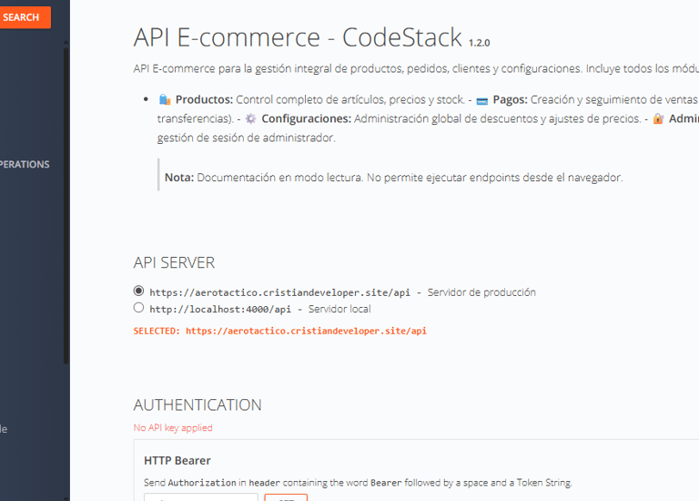 API de E-commerce que permite el CRUD de productos y la gestión de compras, con documentación detallada sobre productos, pagos, configuraciones y administración.